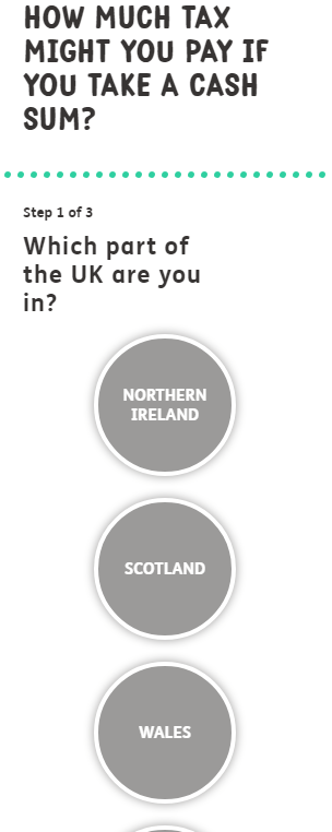 Our pension tax calculator looks at how much you will have earned in the current tax year and determines how much tax is likely to be due, should you choose to take a one off payment from your pension.